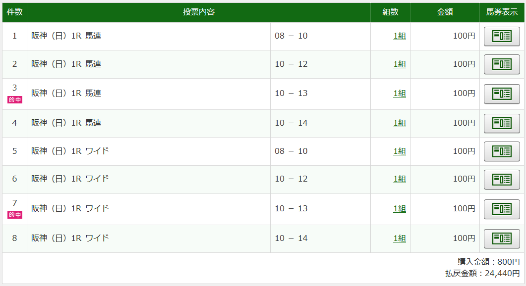 馬連はダメでしたが、なんとかワイドは獲れました。